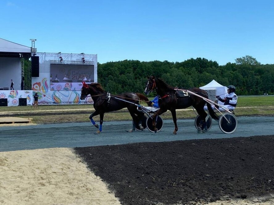 Пожалуй, одним из самых зрелищных и долгожданных моментов стали конные бега. Всего было два заезда на ценные денежные призы.