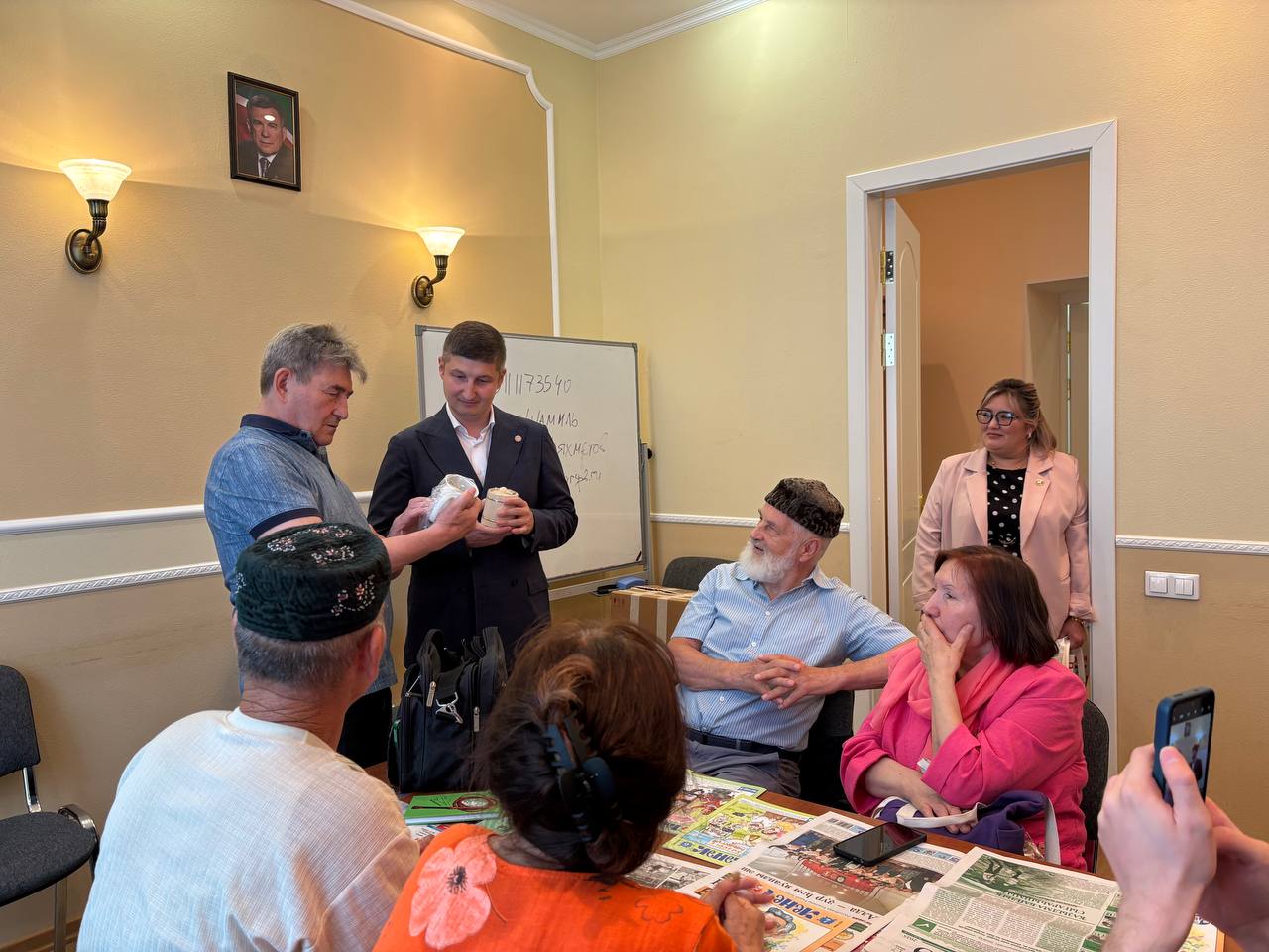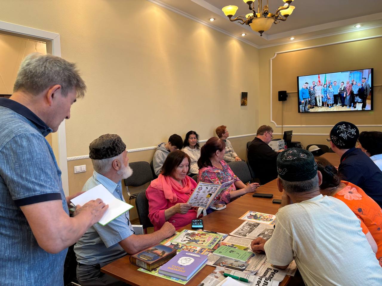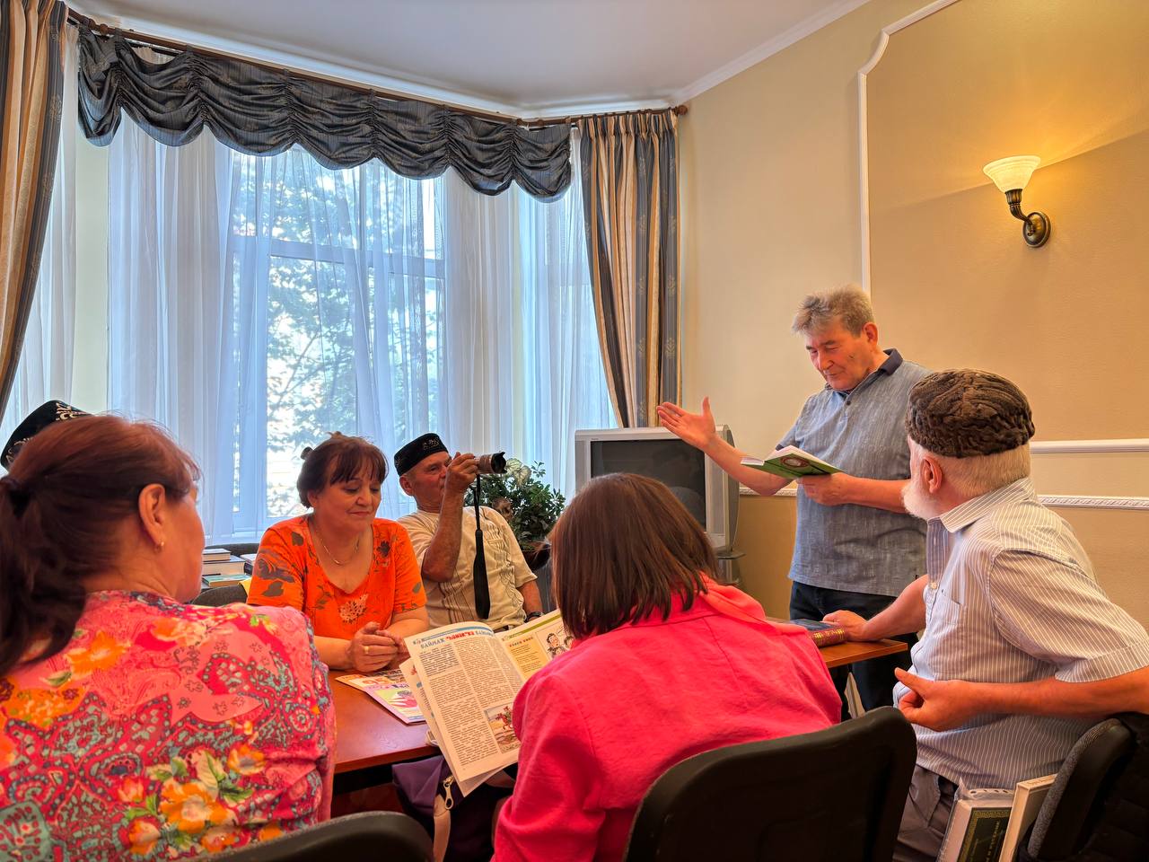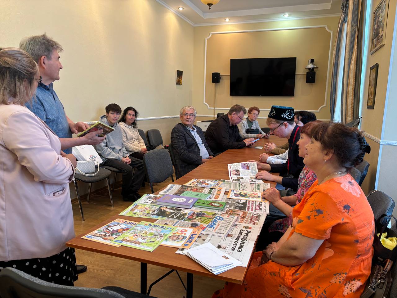 В завершение встречи писатель подарил свои новые книги на татарском и башкирском языках библиотеке Постпредства. Участники мероприятия смогли получить автограф и сделать памятные фотографии.